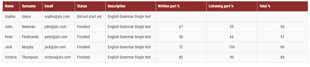The training coordinator can easily see who has (not) completed the compulsory tests.